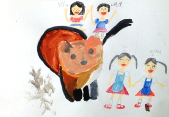 小学1年生は「モモンガ」と「ウミヘビ」と「ウサギ」を描きました。