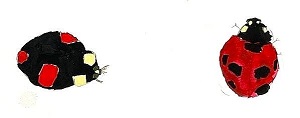 虫博士のK君(小学4年生)はナミテントウとナナホシテントウを描きました。赤い色が鮮やかです。