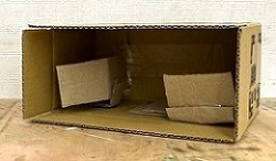 こちらもA君。段ボールで家を作りました。テレビ、ベッド、机と椅子、シャワールームもあるんです。