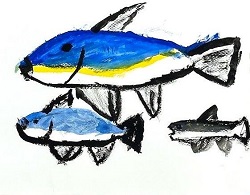 A君はアジ、クサフグを描きました。釣りに行って、アジを山ほど釣ったそうですよ\(^o^)/