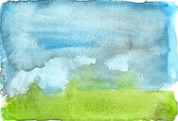 SZちゃん(小学5年生)の作品です。水彩のにじみが美しい。懐かしい風景のようですね。