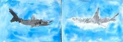 そしてこちらはAO君の「サメ対決」。のびやかな筆使いと色彩が、見ていて気持ちがよいです。