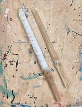 こちらはYG君(小学5年生)の剣。刃の部分をラッピングペーパーでくるんでから、タコ糸でぐるぐる巻きにしました。柄の造形も凝っています。