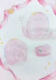 Nちゃん(中学1年生)は「タコピーの原罪」のタコピーを描きました。2025年にアニメ化されて放映されたのですが、かわいい絵柄とは裏腹に、子どもを取り巻くヘビーな内容が描かれていました。私も見たのですが、まだ自分の中で消化しきれていないです。