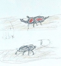 A君作。上はカブトムシ、下はクワガタです。よく見て描いていますね。
