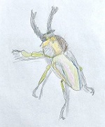A君(小学3年生)は「ニジイロクワガタ」を描きました。画像では見えづらいですが、影をしっかり描いています。