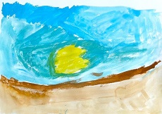 A君は夕日も描きました。のびやかな筆使いです。