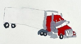 K君(小学4年生)はアメリカのトラック「コンボイ」を描きました。なんだか擬人化できそうな雰囲気のトラックだなと思いました。