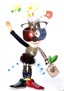 4月の子供クラスでは、古雑誌や包装紙などを使ってコラージュ作品を作りました。